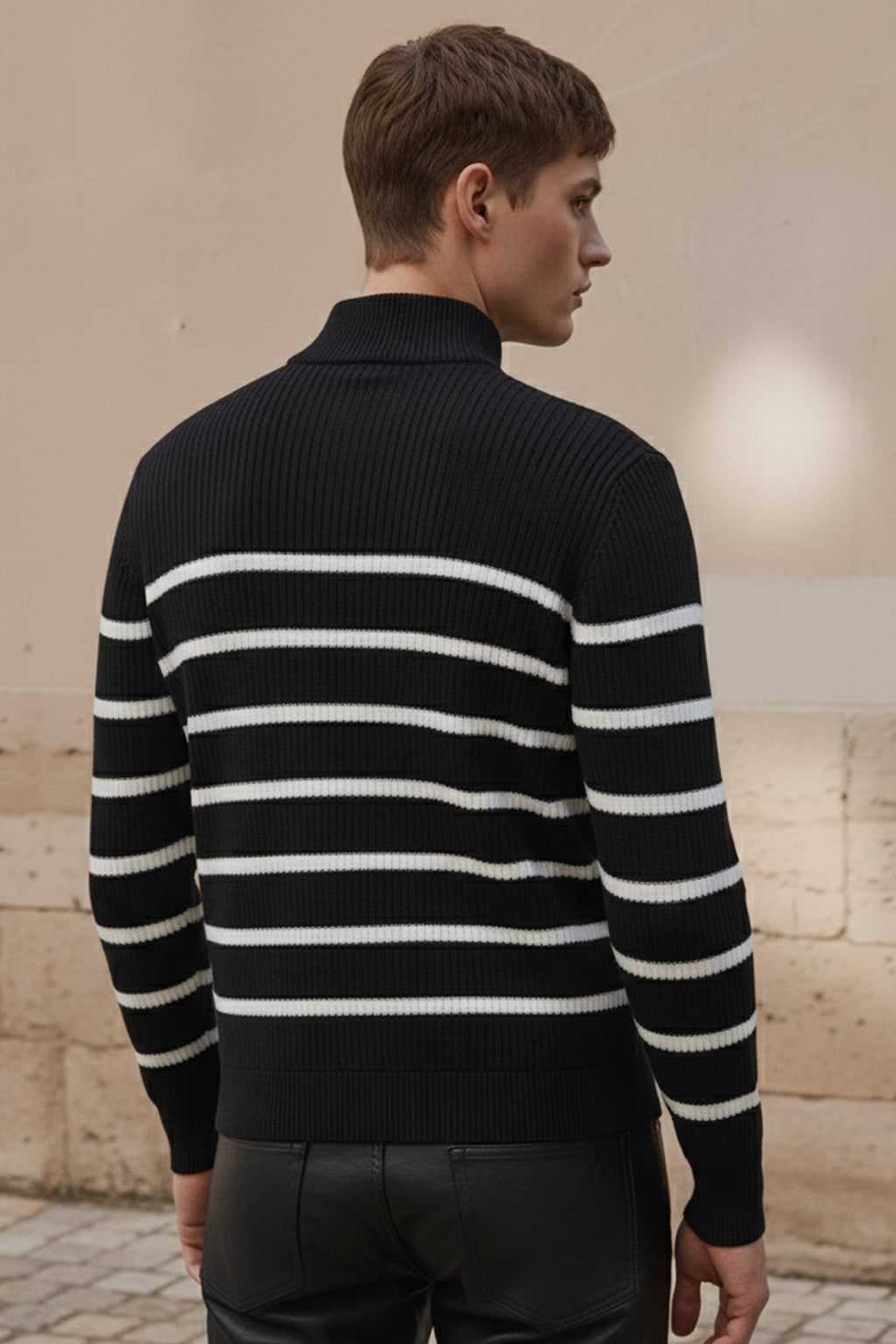 Sweter | Krzysztof – Czarny z Białymi Paskami
