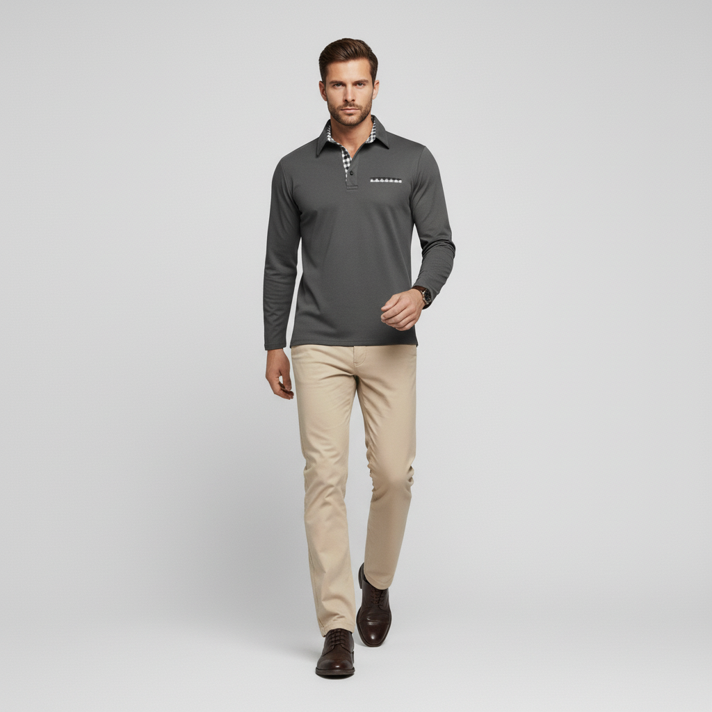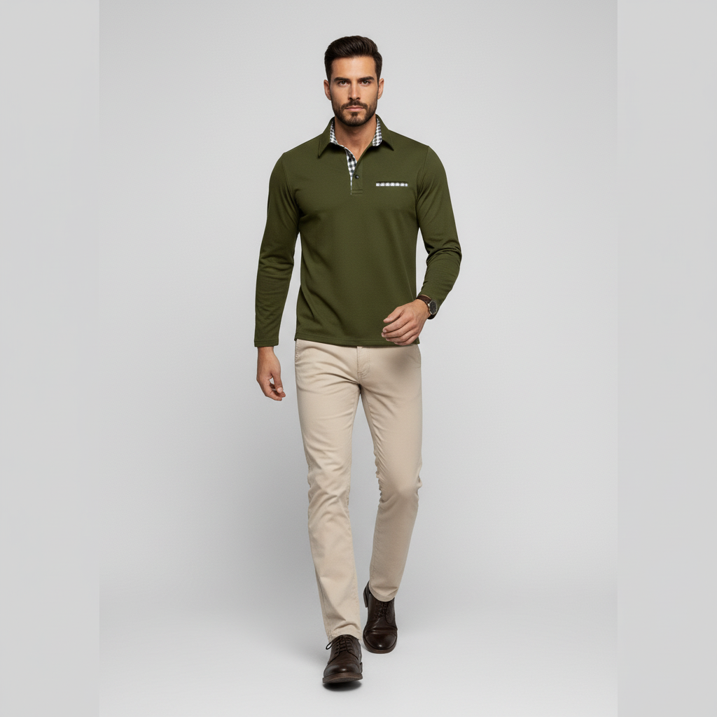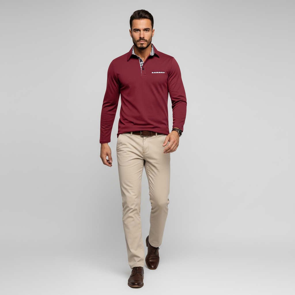 To polo męskie zimowe z długim rękawem łączy klasyczną linię z wyglądem pasującym do chłodniejszych miesięcy. Model wpisuje się w popularne wyszukiwania takie jak polo męskie czy koszulka męska, zachowując prosty, uporządkowany charakter. Sprawdza się w codziennych zestawieniach, od miejskich wyjść po spokojniejsze stylizacje.
