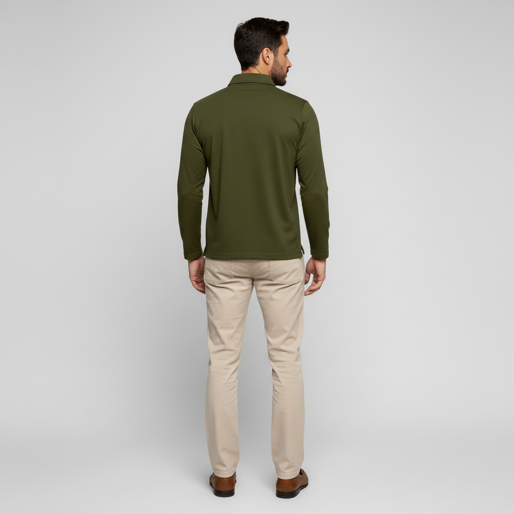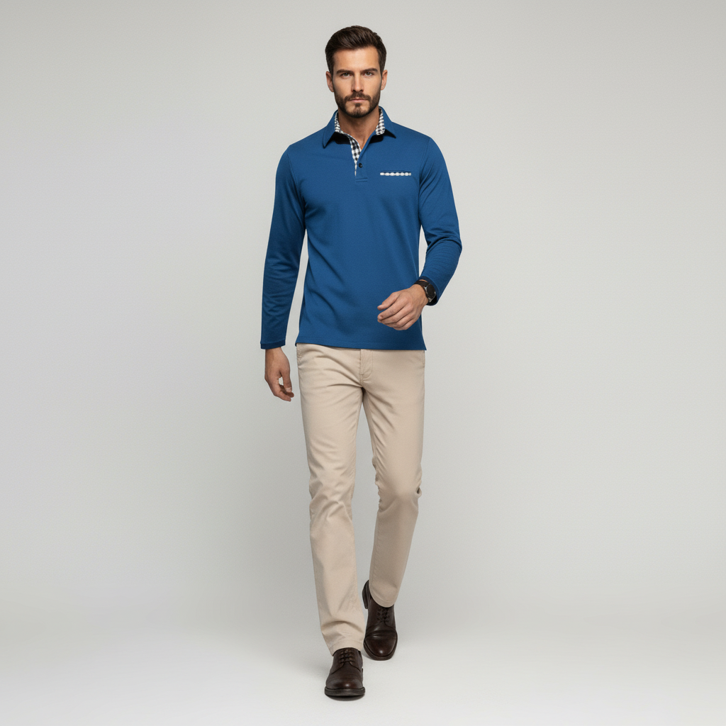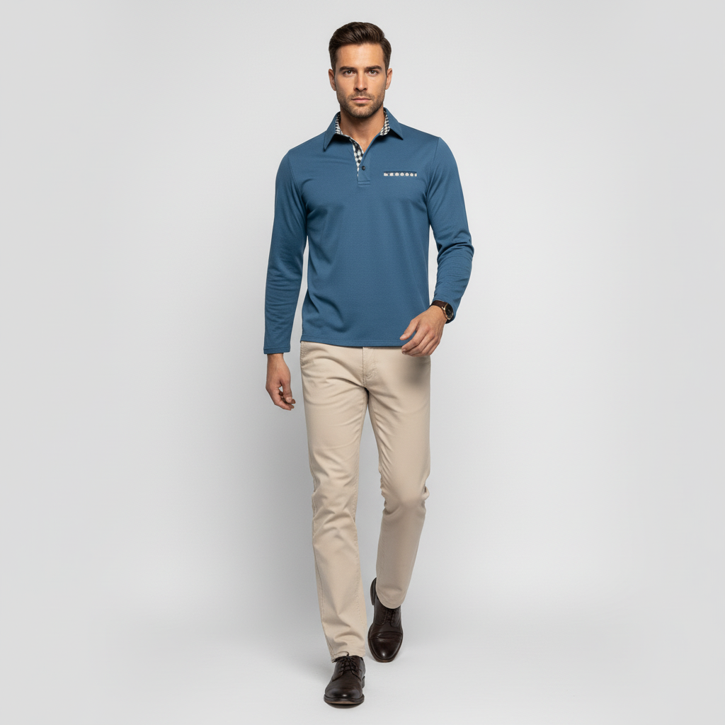 To polo męskie zimowe z długim rękawem łączy klasyczną linię z wyglądem pasującym do chłodniejszych miesięcy. Model wpisuje się w popularne wyszukiwania takie jak polo męskie czy koszulka męska, zachowując prosty, uporządkowany charakter. Sprawdza się w codziennych zestawieniach, od miejskich wyjść po spokojniejsze stylizacje.