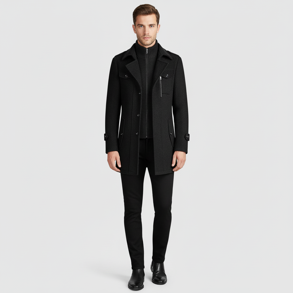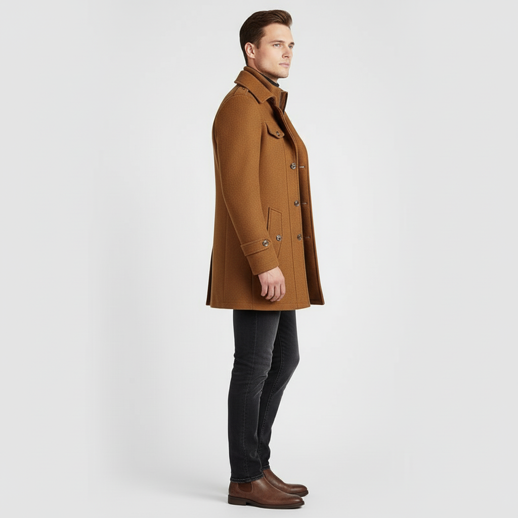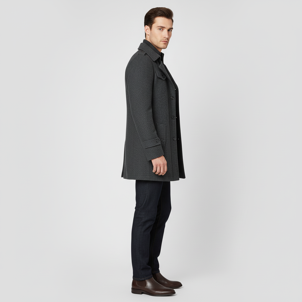 Ten męski płaszcz z kołnierzem to elegancka odzież, idealna zarówno na co dzień, jak i na formalne okazje. Jego ponadczasowy krój podkreśla sylwetkę, a starannie dopracowane detale nadają mu charakterystyczny wygląd. Jest to element, który wzbogaci Twoją zimową garderobę.