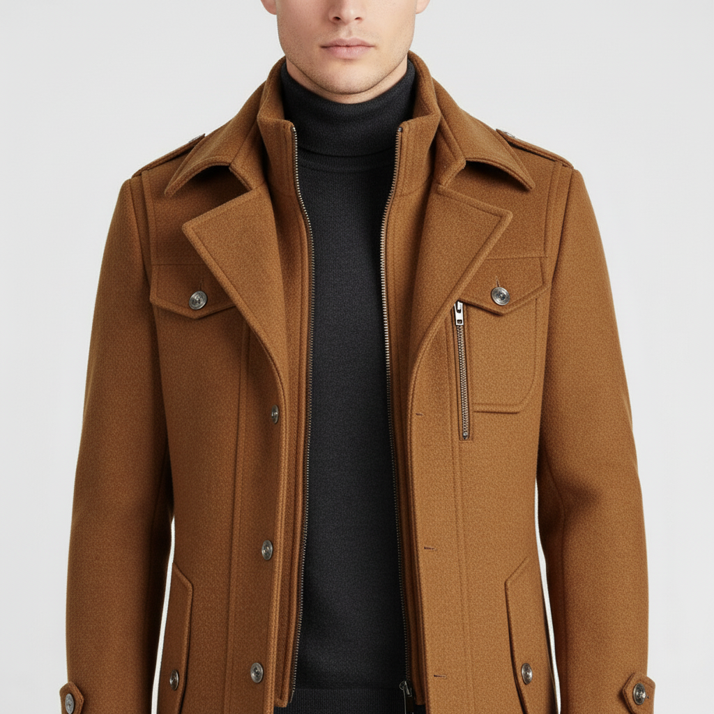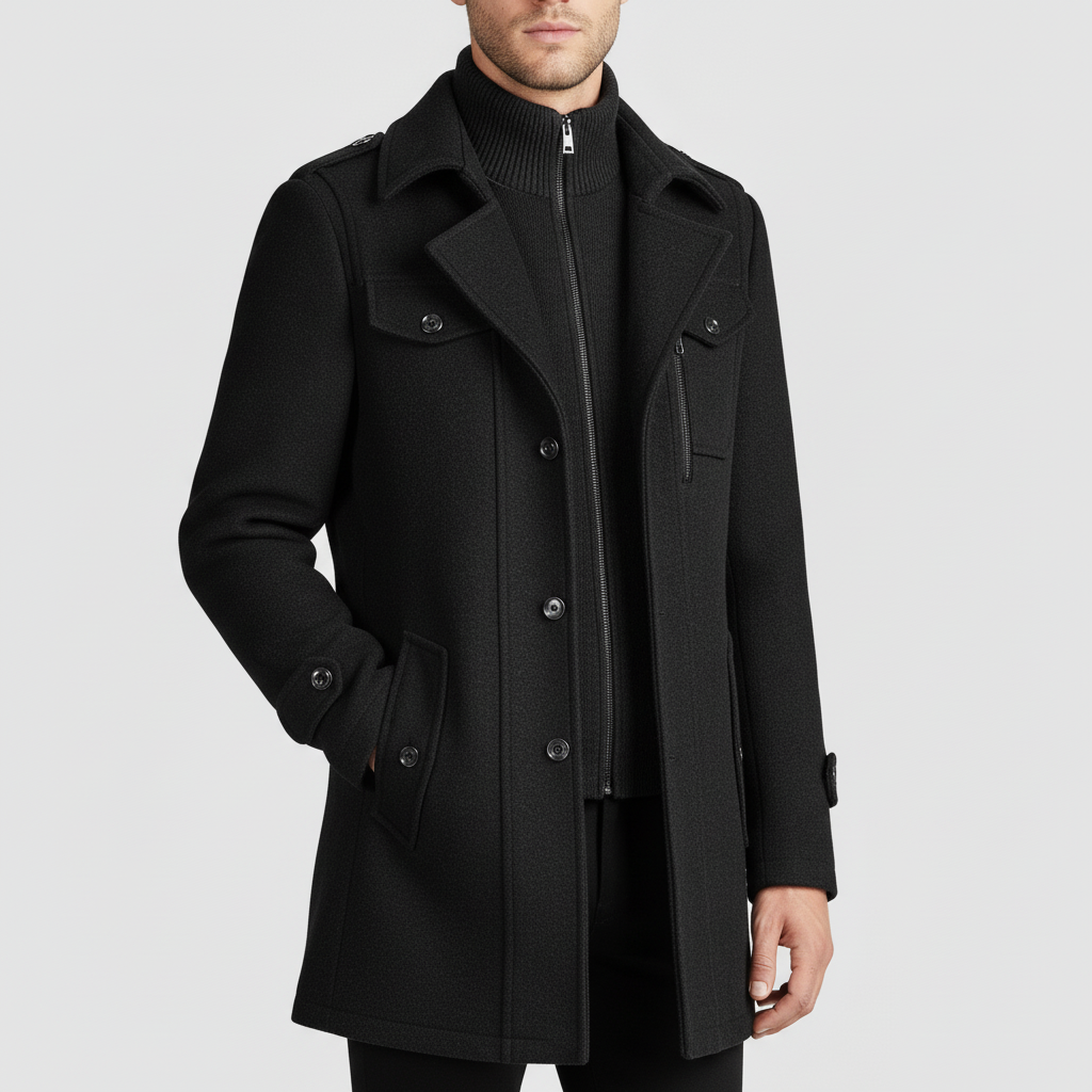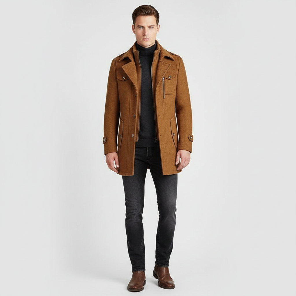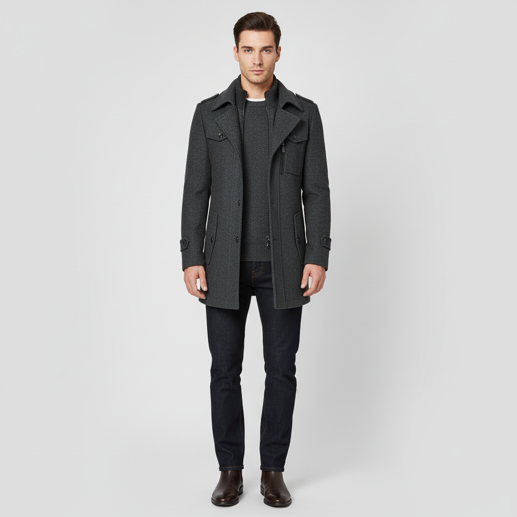 Ten męski płaszcz z kołnierzem to elegancka odzież, idealna zarówno na co dzień, jak i na formalne okazje. Jego ponadczasowy krój podkreśla sylwetkę, a starannie dopracowane detale nadają mu charakterystyczny wygląd. Jest to element, który wzbogaci Twoją zimową garderobę.
